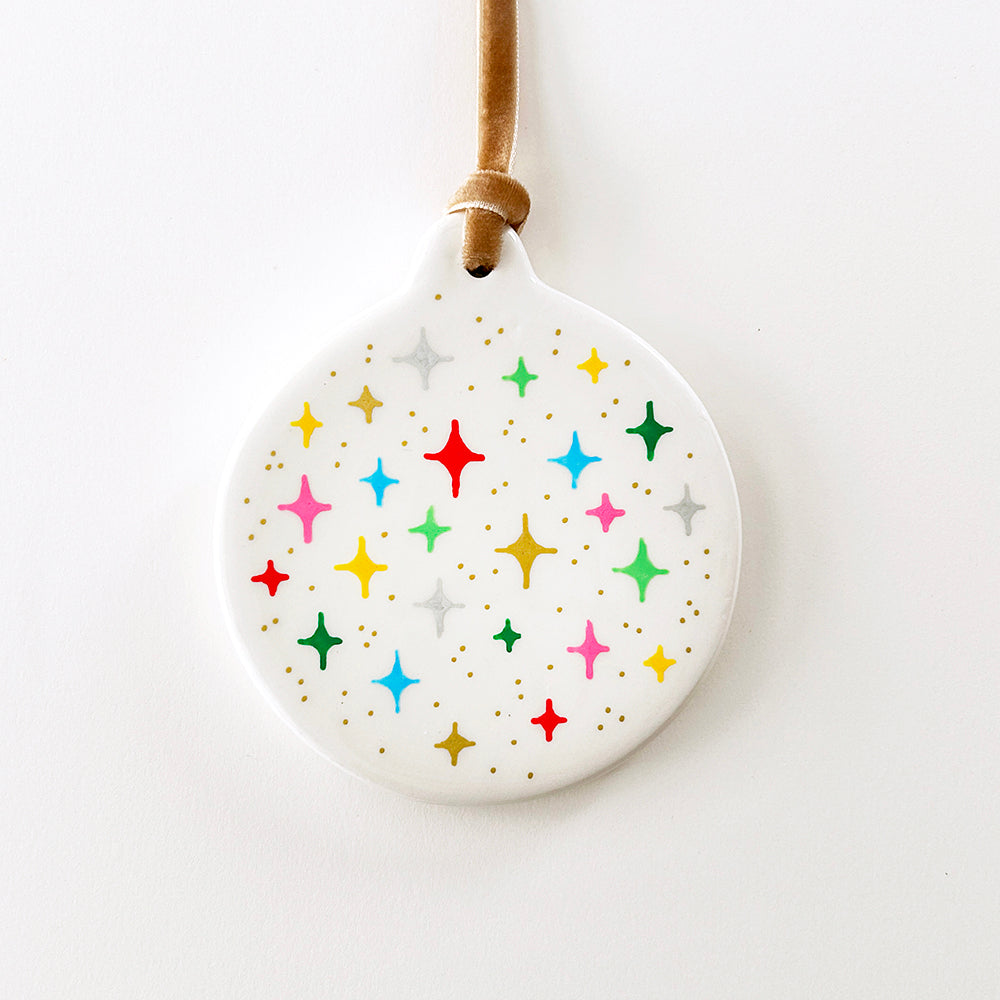 Circle Ornament - Rainbow Sparkles - Gold Velvet Ribbon