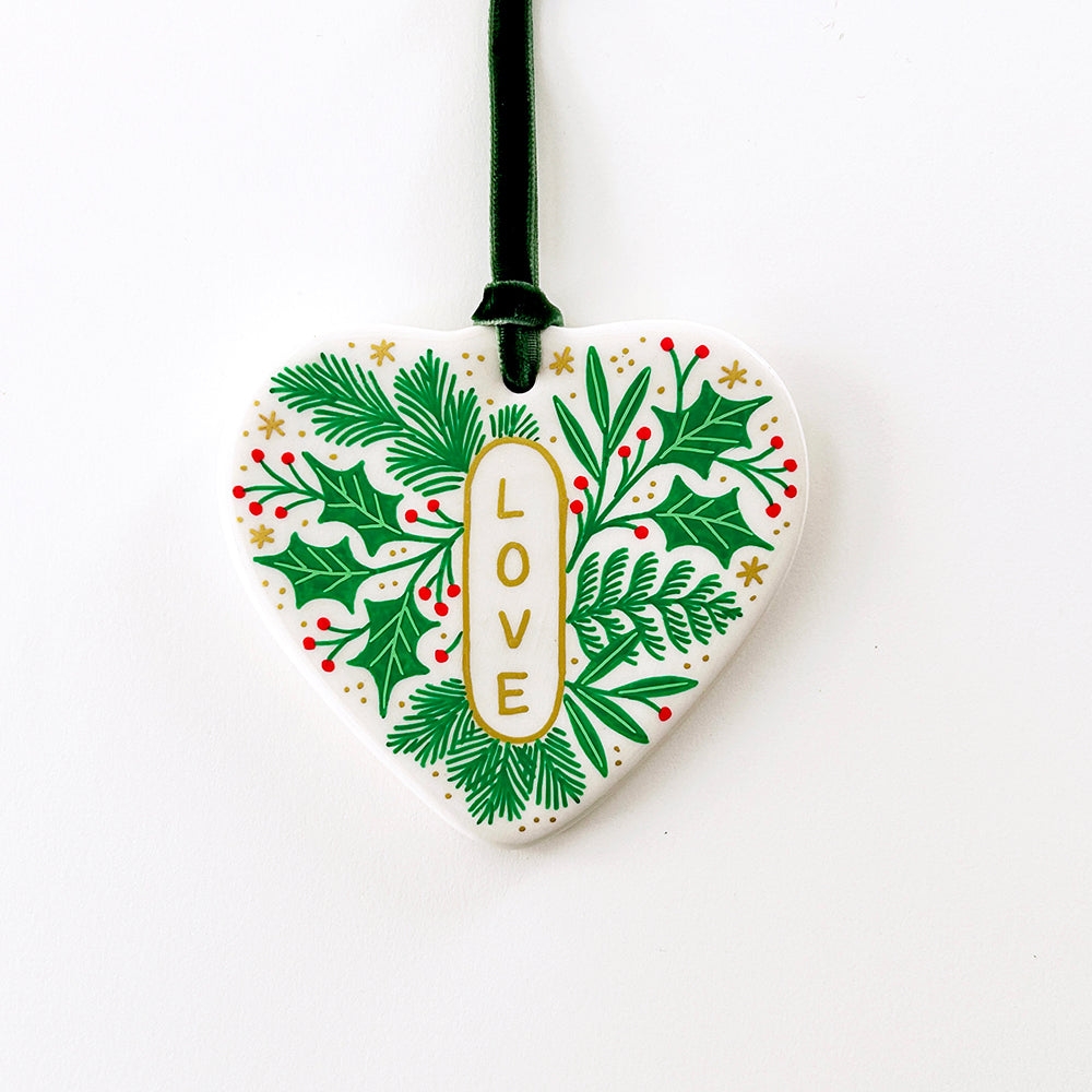 Heart Ornament - Love Emblem - Green Velvet Ribbon
