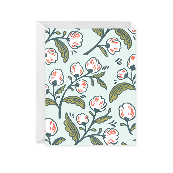 This card can be used for any sentiment, and has a pretty pattern of hand-drawn white flowers adorning the front. Perfect for Thinking of You, or just a simply Hello or Thank You!